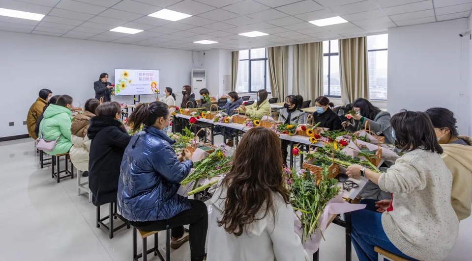 3月4日下午,20名女性社矫对象,在苏华职业学校和市司法局的精心组织安排下,进行着一次轻松愉悦的“心灵修行”。活动贯穿认识花、养护花、了解花语、整个花篮的插花过程。在创作过程中,女性社区矫正对象兴致勃勃,边听讲解边操作,提升了对美好事物的感受力,增强了自我的幸福感、价值感、满足感,同时也为她们提供了解手工技艺、探索新职业的机会。