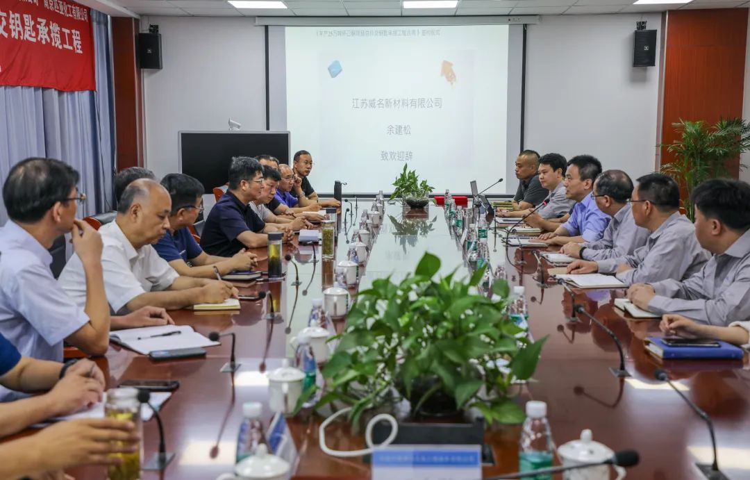 6月28日,江苏威名新材料公司年产25万吨环己酮项目总价交钥匙承揽工程在南通洋口港成功签约。江苏威名新材料公司总经理余建松、副总经理郑荣文、吕澎涛,河南平煤集团神马尼龙工程技术公司董事长、总经理仝洪昌、副总经理原子平、陈聚良,苏华建设集团公司副总经理杨保金、黄柏枝,807项目部总经理史国民以及南京匹亚化工有限公司董事长、总经理孙化平等相关领导出席签约仪式。该项目投资16.09亿元,施工周期20个月,是由苏华建设集团负责项目设计、施工、采购、培训、开车服务和性能考核的EPC总承包工程。