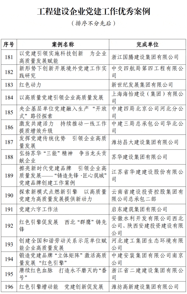为深入学习宣传贯彻党的二十大精神,总结推广工程建设企业党的建设的先进经验,进一步提升工程建设企业的党建工作质量,中国施工企业管理协会广泛开展了党建工作创新典型案例征集宣传活动。经企业申报、省级协会推荐、专家评审,日前,苏华集团《弘扬苏华“三能精神” 争当龙头贡献企业》案例喜获全国工程建设企业党建工作优秀案例。